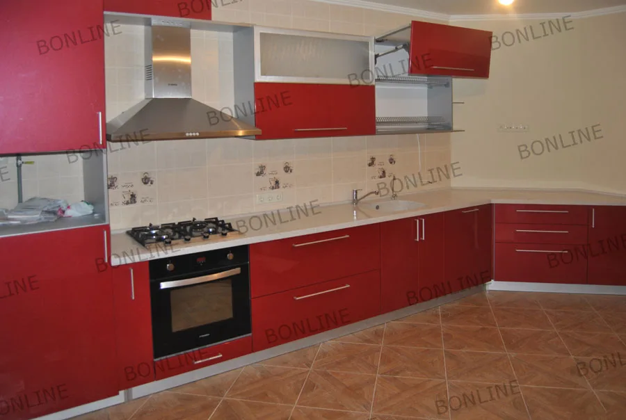 Велика кутова кухня з фасадами МДФ фарбований глянець.