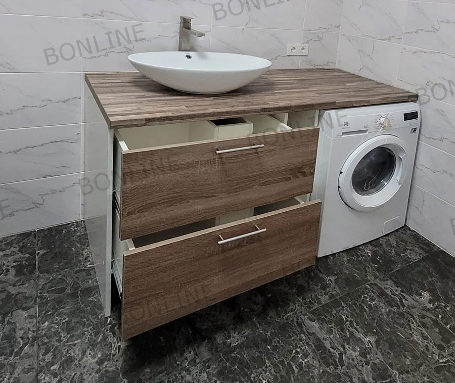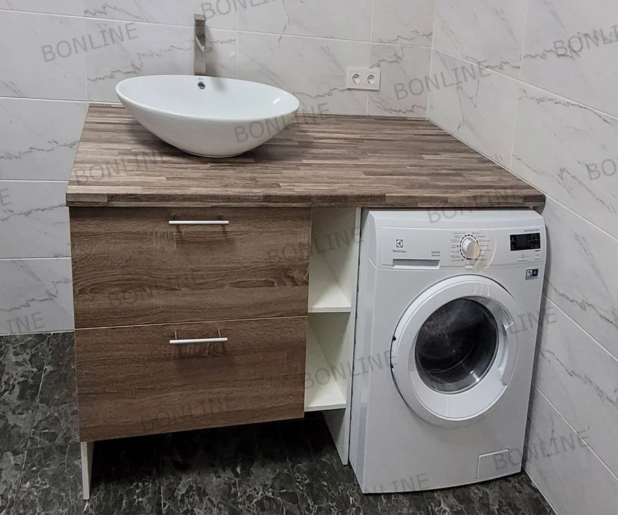 Корпус тумби виконаний з ДСП KRONOSPAN, кольору Ваніль, фасади: Дуб Сонома Трюфель